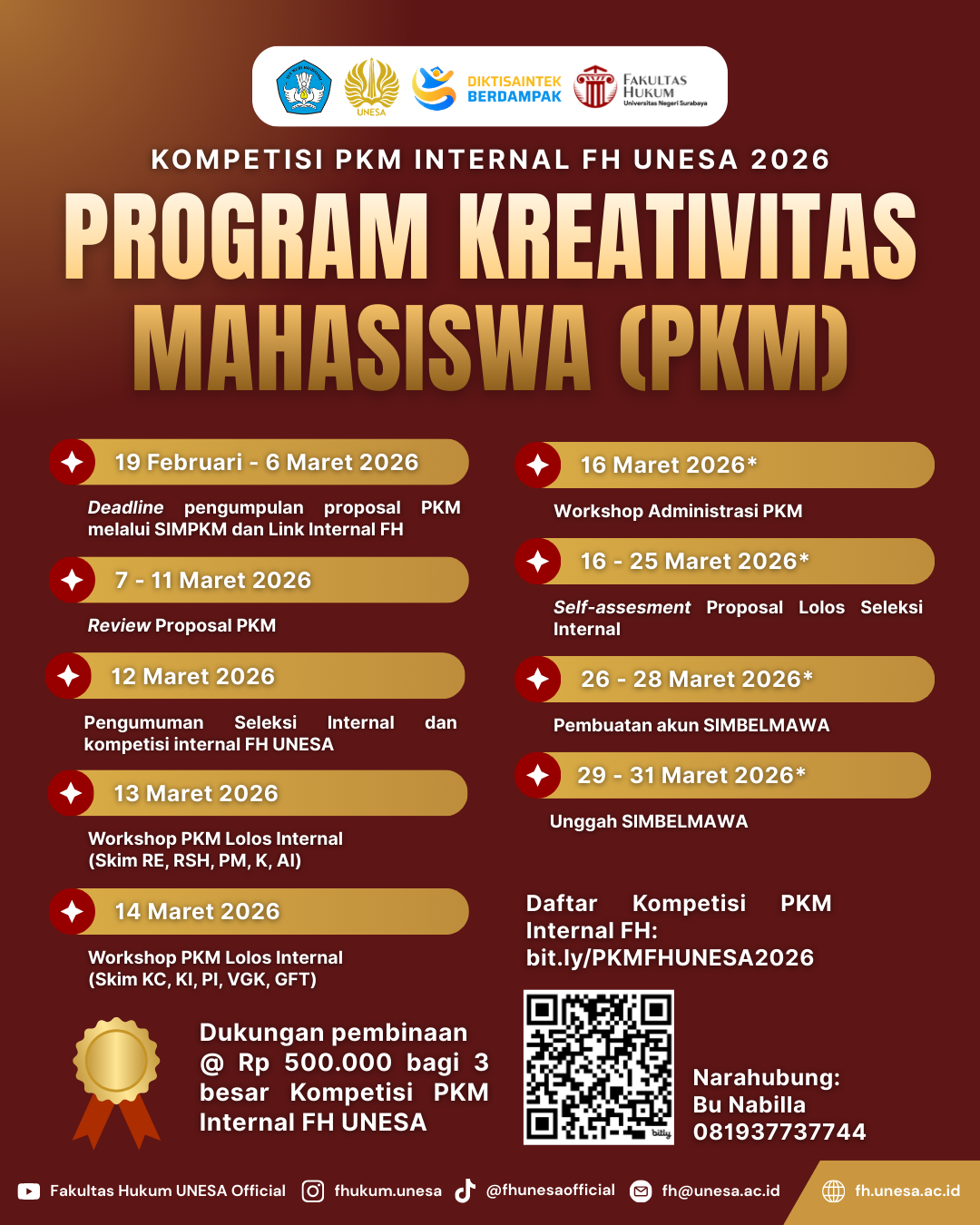 π Link pendaftaran Kompetisi PKM Internal FH: https://bit.ly/PKMFHUNESA2026